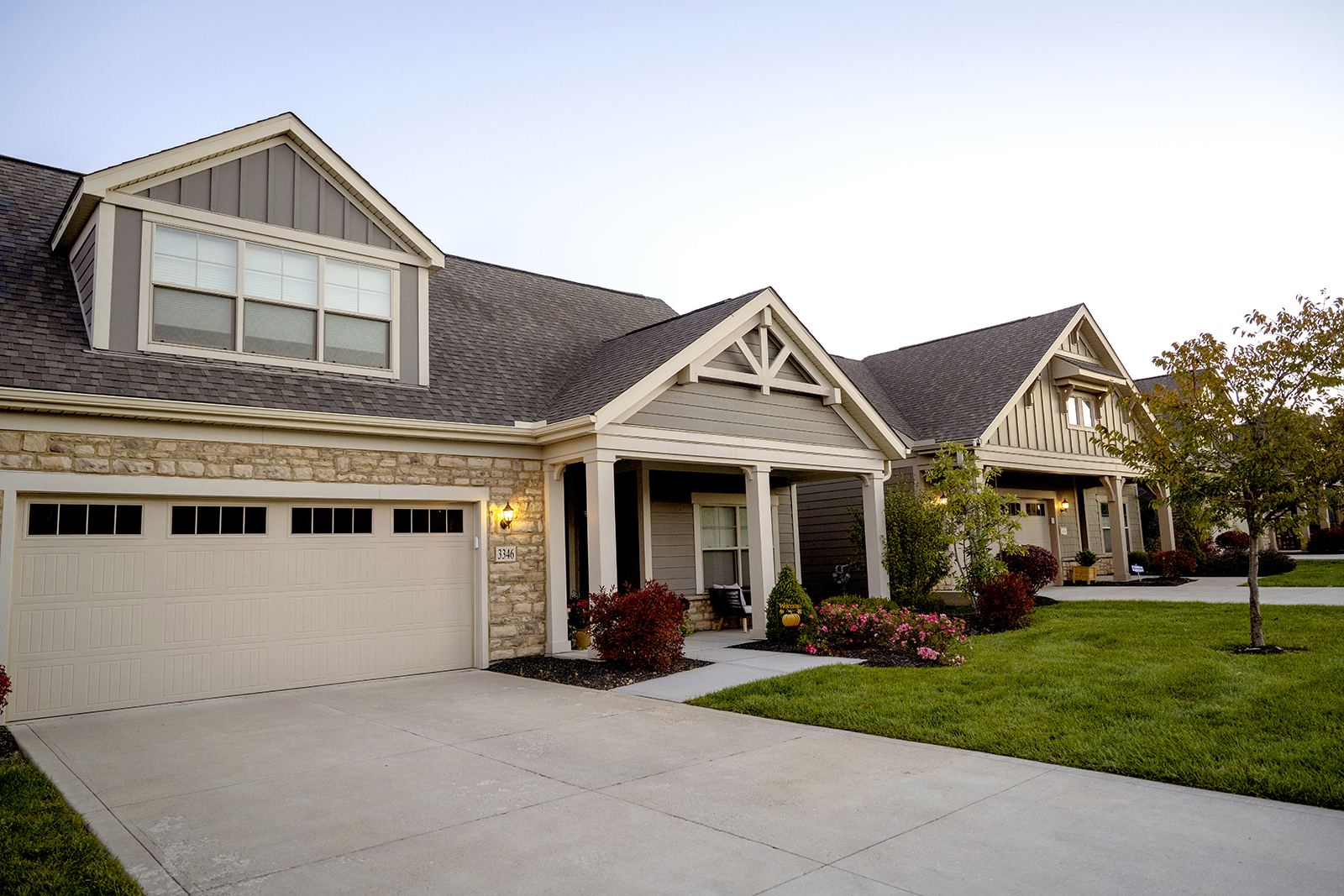 The Courtyards on Riverside is a multi-unit residential condominium development located along the Scioto River just south of Dublin, Ohio. This Epcon community features Cape Cod–style homes designed with first-floor primary bedroom layouts and optional upper levels, delivering functional, accessible living within a cohesive neighborhood setting. The development includes a clubhouse, pool, outdoor pavilion, and pickleball court, contributing to a well-planned community environment.